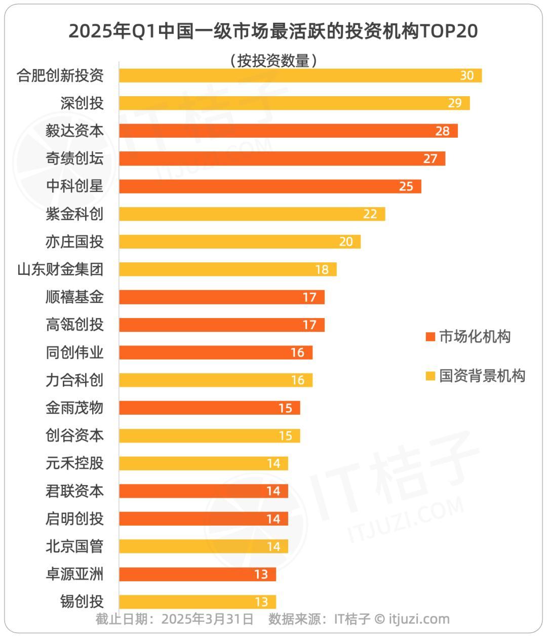 根据IT桔子统计,Q1上榜的活跃国资背景机构包括:合肥创新投资、深创投、紫金科创、亦庄国投、山东财金集团、力合科创、创谷资本、元禾控股、北京国管、锡创投等。