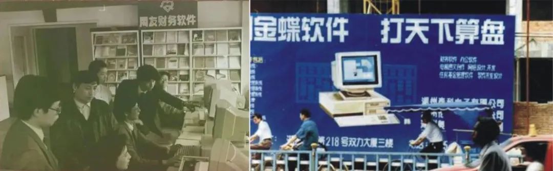 用友和金蝶早期影像,图源用友官方微信公众号、金蝶官方微信公众号