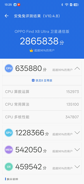 性能层面,Find X8 Ultra搭载潮汐引擎 x 骁龙8至尊版,堪称性能天花板。骁龙8至尊版这颗核芯我们非常熟悉,它采用高通全新自研Oryon架构与先进的第二代3nm制程工艺,在CPU单核性能、GPU性能等方面,相对上一代旗舰移动平台骁龙® 8 Gen3均有40%以上的提升。同时,CPU指令数量降低22.74%、关键任务等待时间降低66%、关键任务计算效率提升49%。