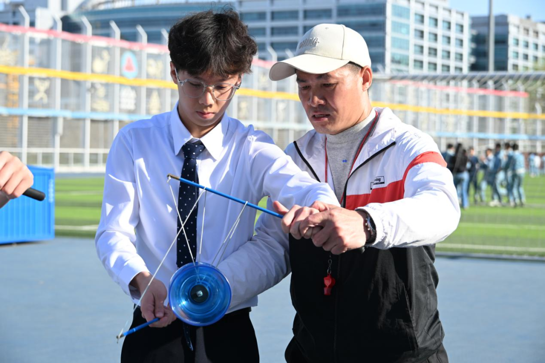 “北京同学和我们一样,特别活泼,相处起来很自然。”台湾高中生李阿德一边调整空竹的平衡,一边分享感受。在操场上,他随着老师“右手往上提,左手往下跟”的指导抖动空竹,逐渐掌握节奏。李阿德告诉记者,在台湾,抖空竹称作“扯铃”,他小时候接触过,这次来到北京西城又学到一些新技巧。谈到对北京八中的印象,他表示,第一眼就看到了校园里的孔子雕像,浓厚的文化氛围让人肃然起敬。