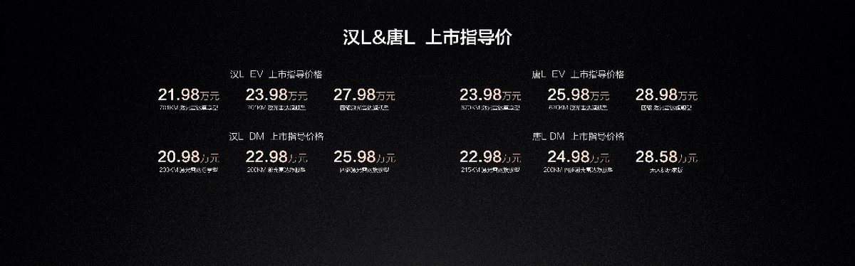 4月9日,比亚迪接连推出两款划时代旗舰车型——汉L与唐L,以20.98万至28.98万元的售价区间,向20万-30万元主流市场发起强势冲击。汉L定位为“年轻人的第一台旗舰轿车”,唐L则瞄准多人口家庭的品质出行需求。