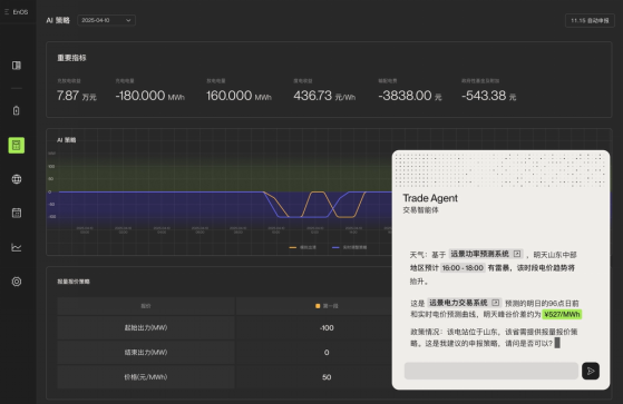 基于精准电价预测,远景交易智能体自动整合实时设备状态信息、各地交易规则策略模型,自生成AI交易策略,实现自动申报及控制闭环,还可以根据交易结果,自动复盘,持续优化交易策略;远景交易智能体还打通了交易、生产和运维,通过智能排程,确保全生命周期收益最优。