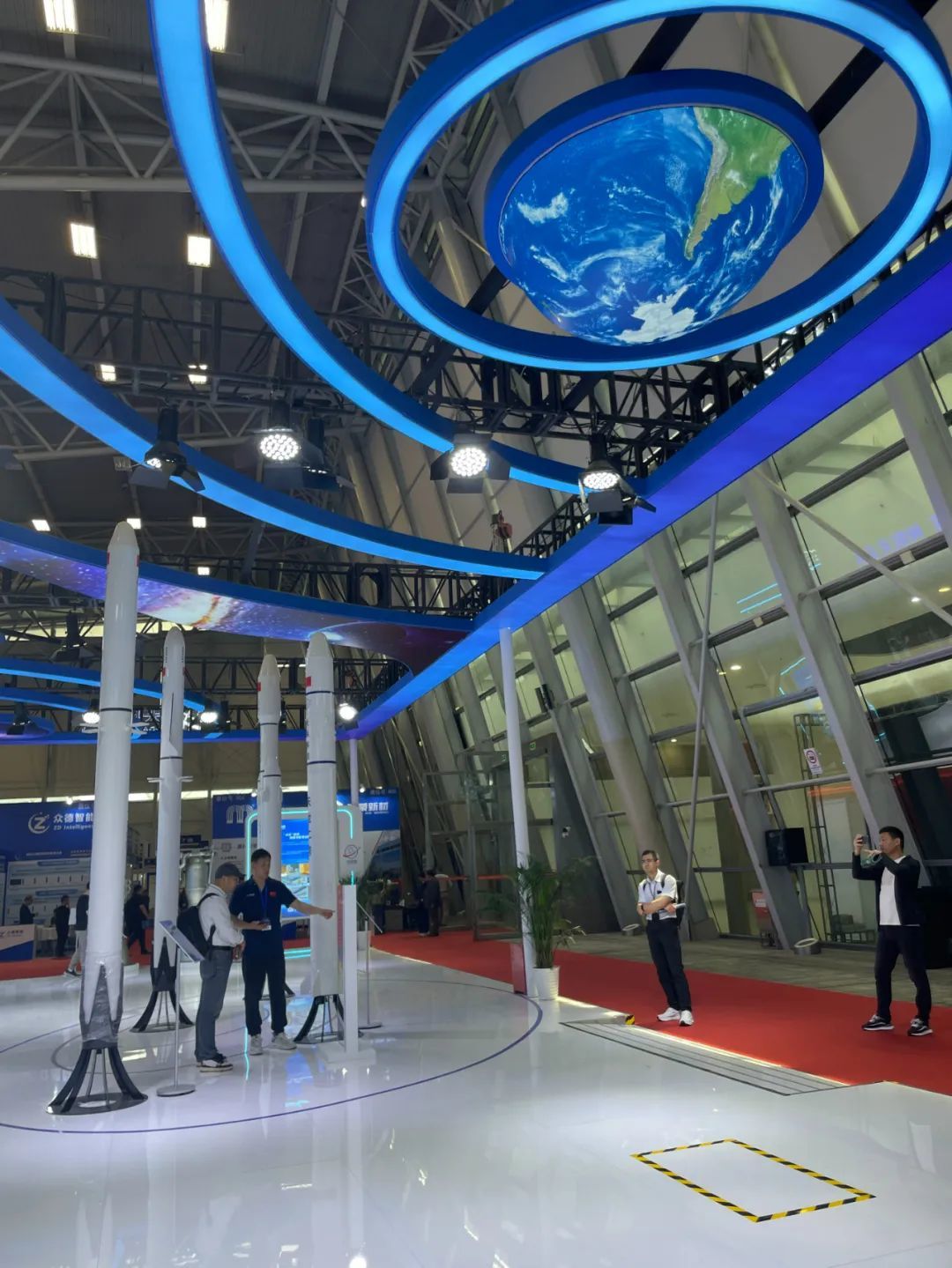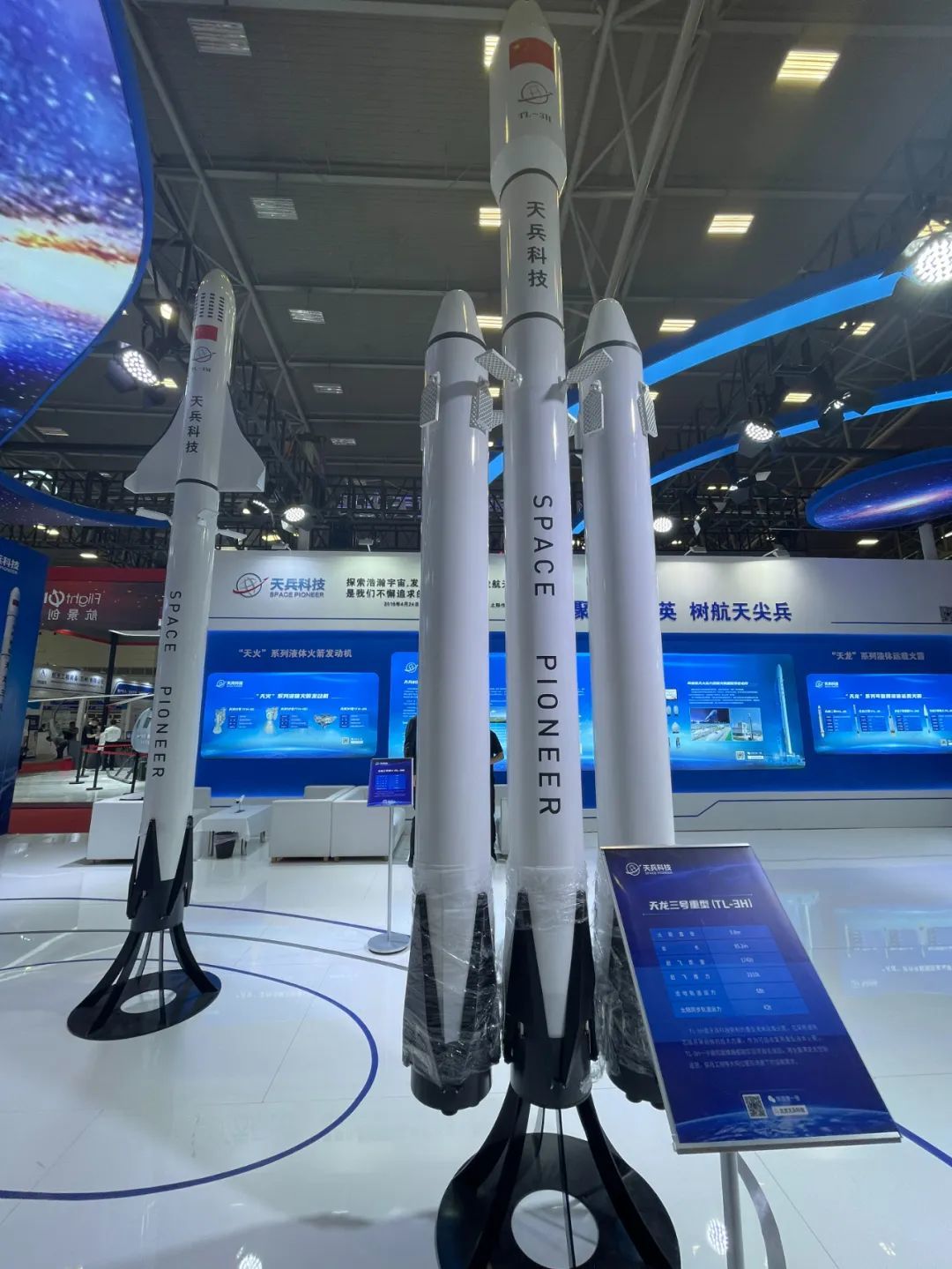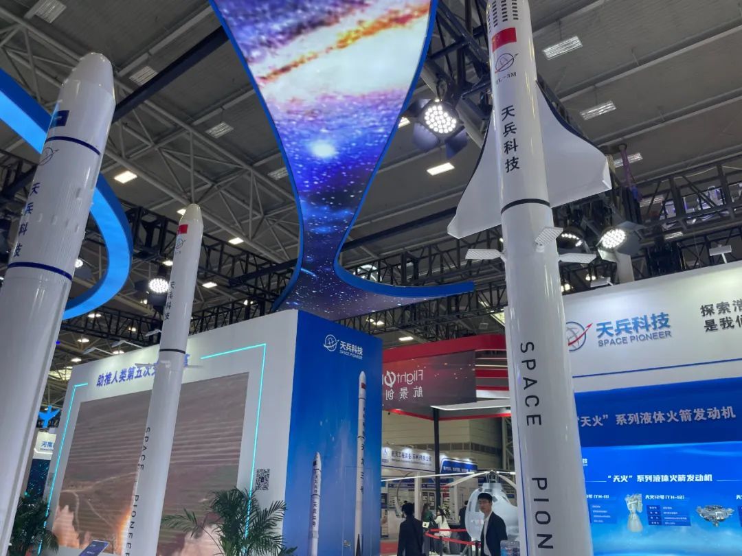 此次参展企业——天兵科技致力于液体火箭发动机及中大型液体运载火箭研制。现场展示的天龙二号、天龙三号运载火箭,引人驻足。