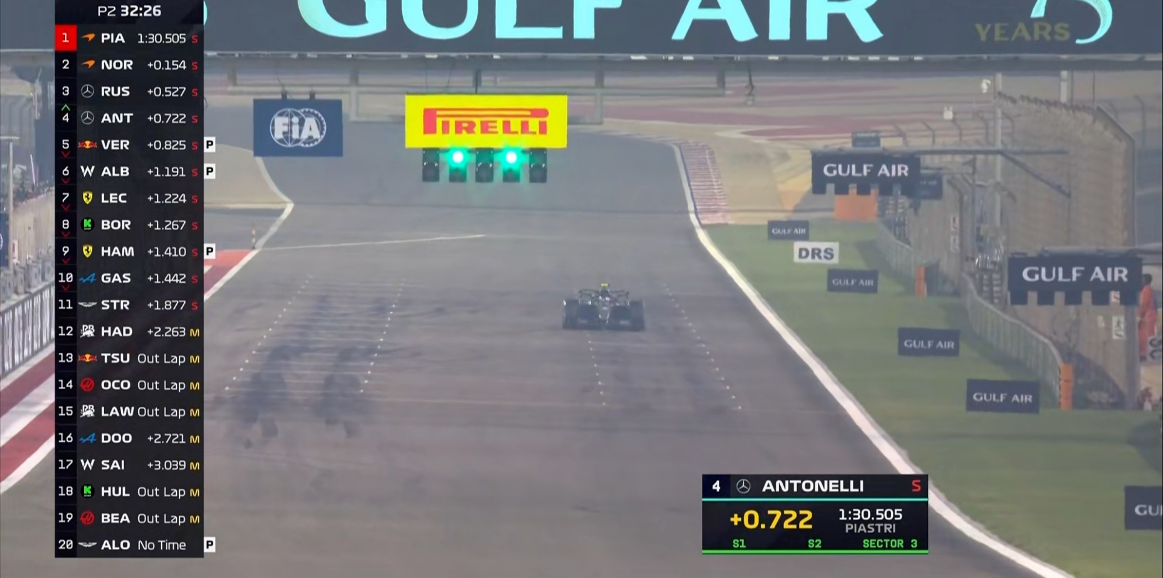 第1-第5:皮亚斯特里、诺里斯、拉塞尔、勒克莱尔、安东内利