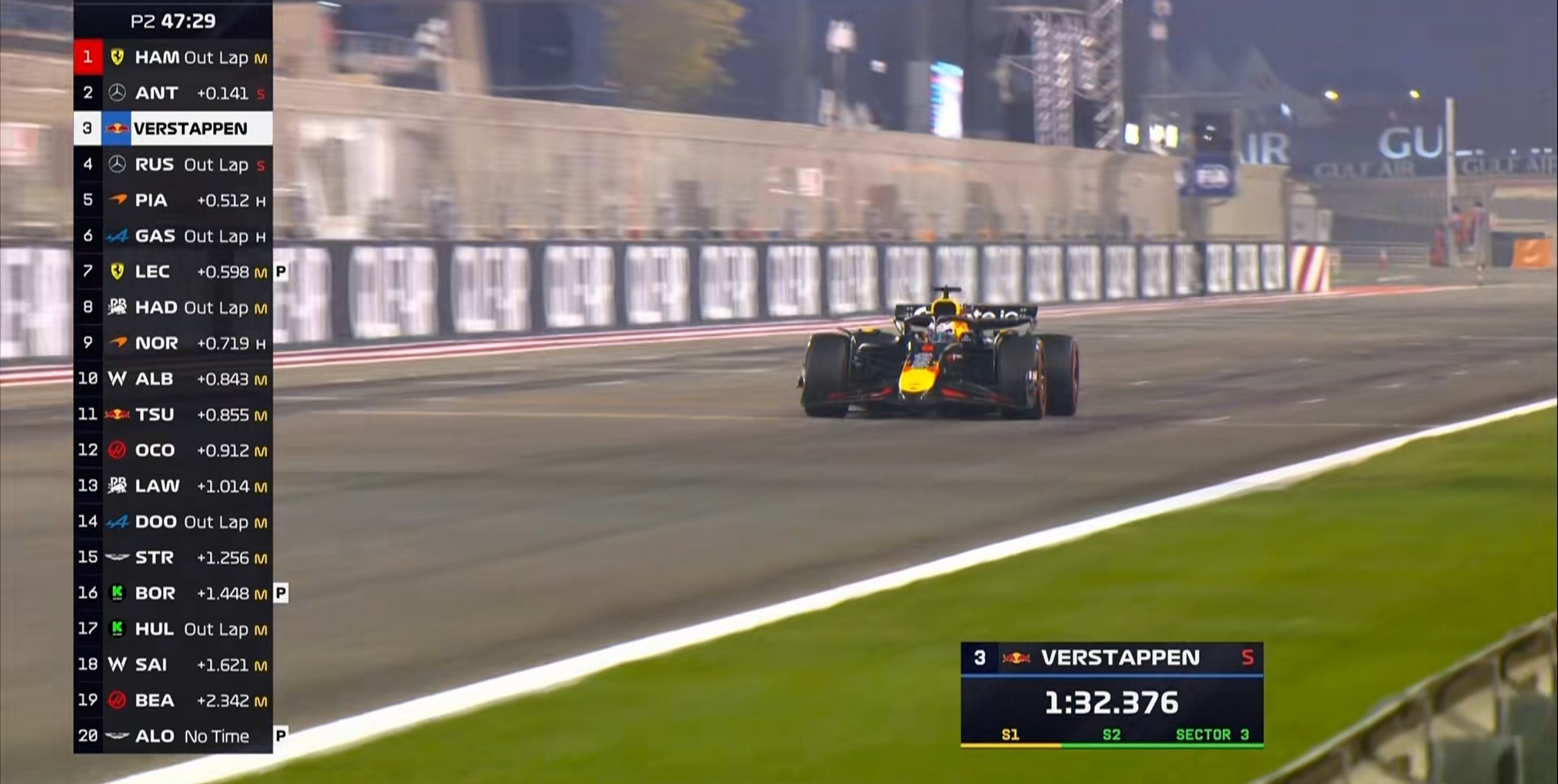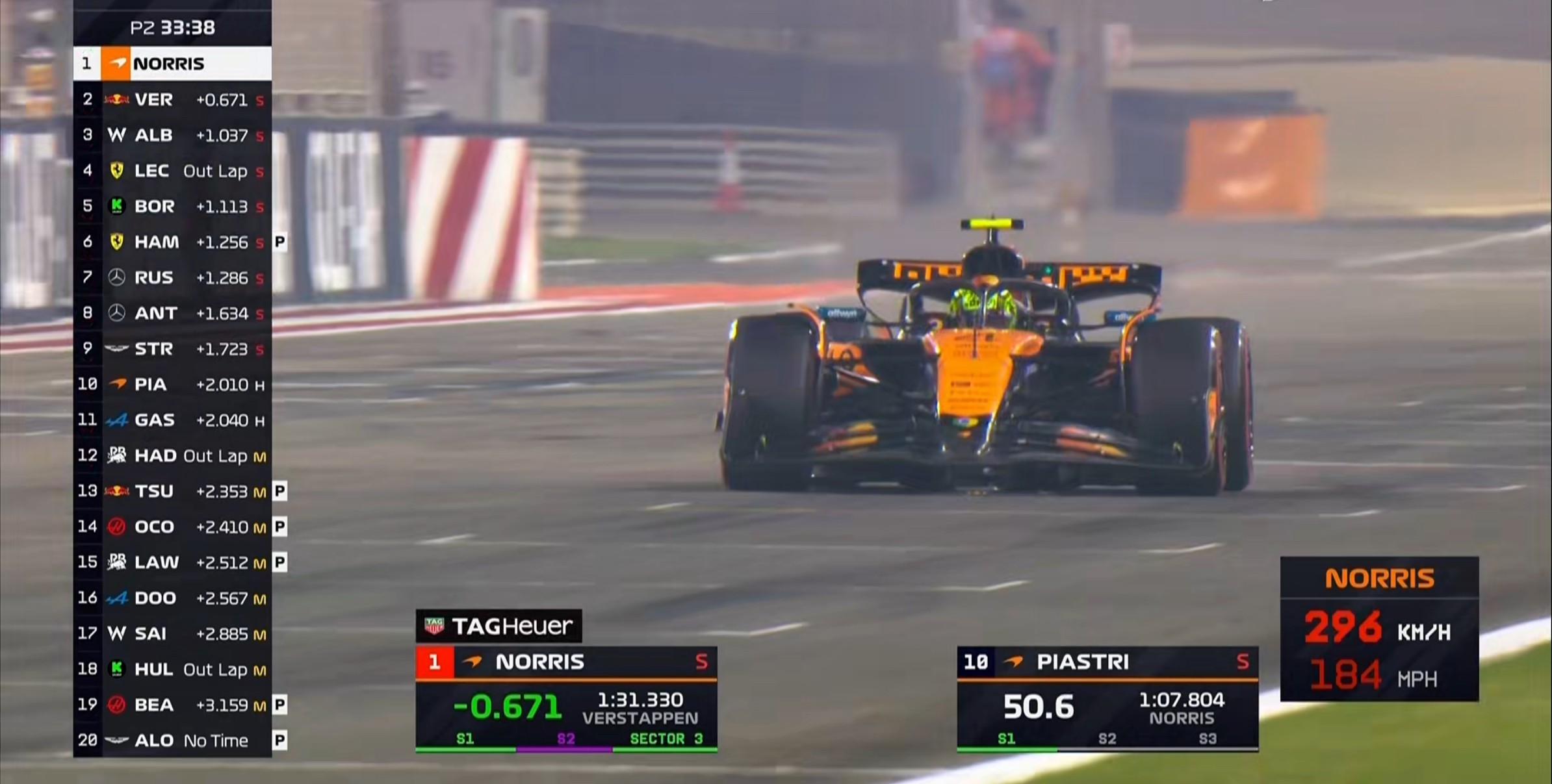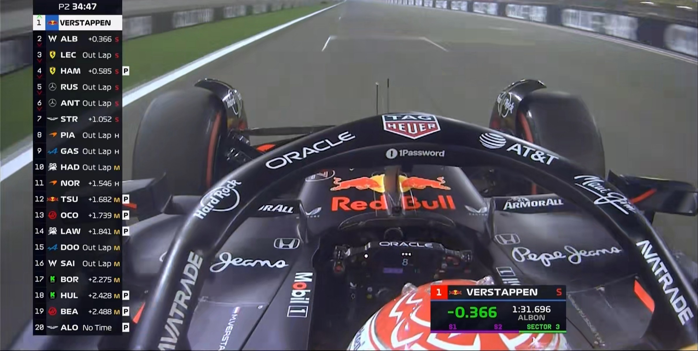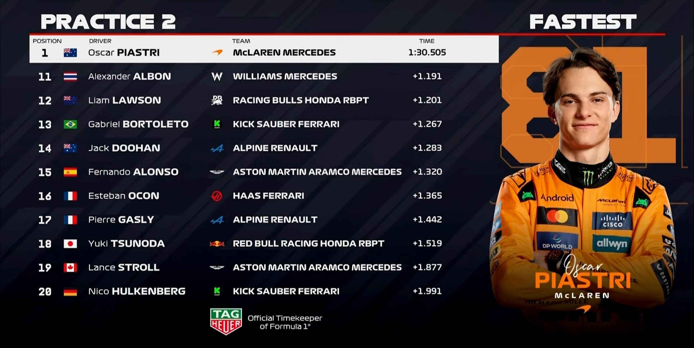 所有车手均完成排位赛模拟,两台迈凯伦优势明显,四台红牛中最快的是哈贾尔,角田的成绩不够理想,法拉利与梅奔的成绩很接近!