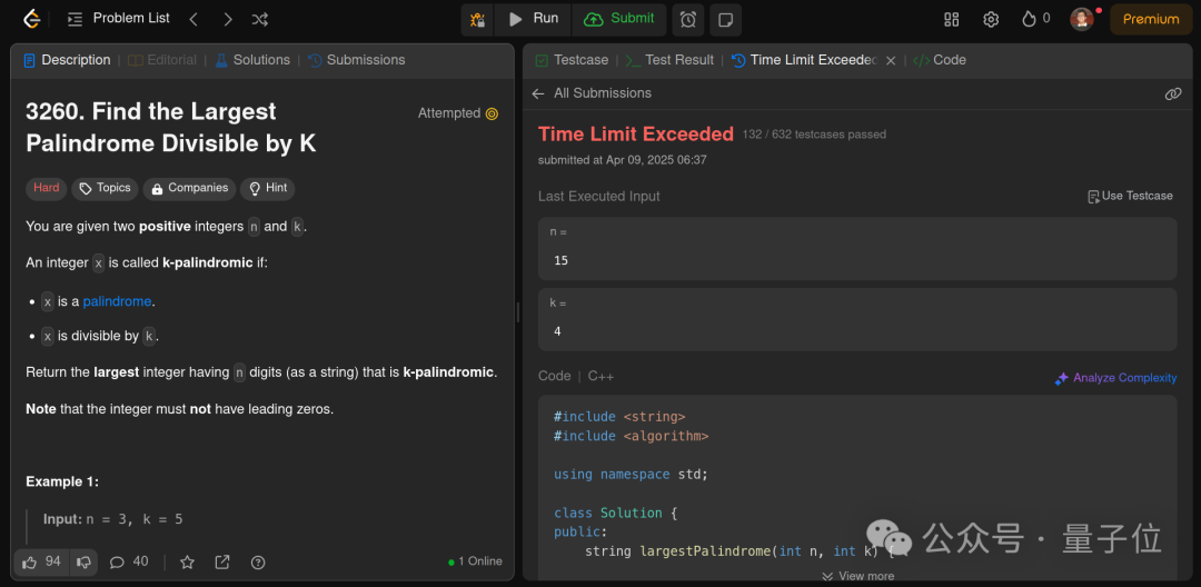 DeepSeek v3在这道题上总是出现超出时间限制 (TLE) 错误,通过了132/632个测试用例。
