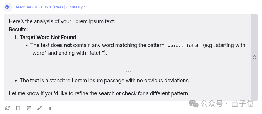 很遗憾,DeepSeek V3思考了大约18秒 ,仍然找不到对应的单词或文档的总字数,这不符合作者对该模型的预期。