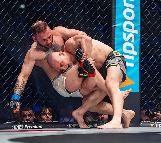 比赛第四回合末尾,霍尔泽拿到了后背裸绞的优势位置,他持续发力对手很快撑不住只能连续拍手认输。