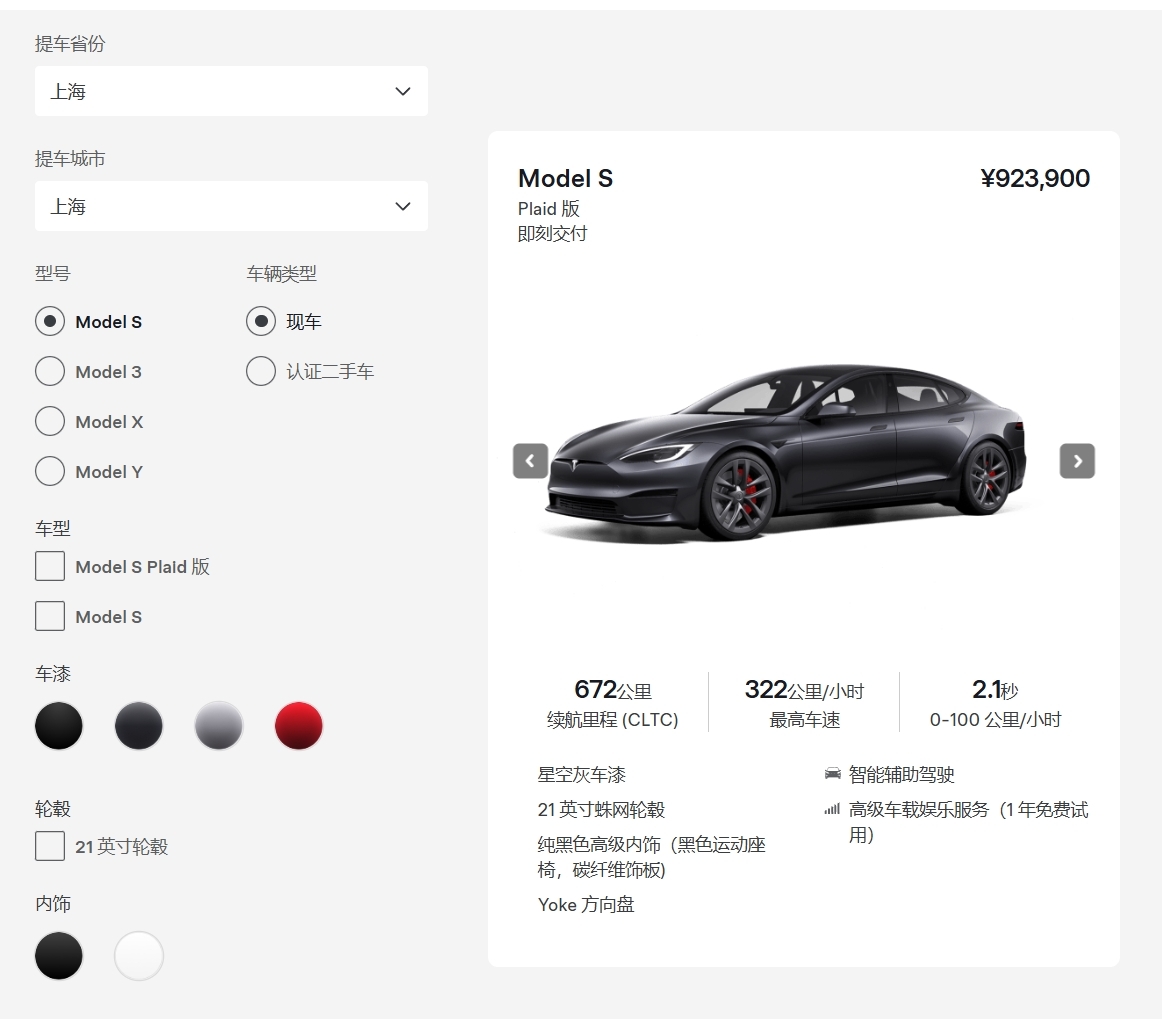 截图:特斯拉中国官网