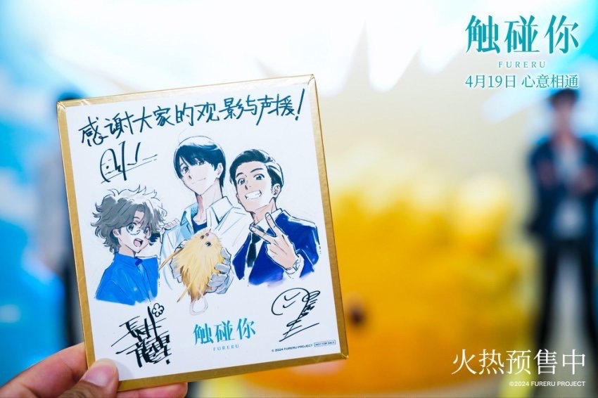 东方网记者熊芳雨4月12日报道:由长井龙雪导演、 冈田麿里编剧和田中将贺角色设计的全新日本动画电影《触碰你》 于 4 月 11 日在上海举办 “ 春日 「碰」 见你 ” 中国首映礼,导演长井龙雪惊喜现身,在映后 与现场观众互动分享,畅聊创作感悟。此次首映礼也吸引了众多粉丝来到现场。