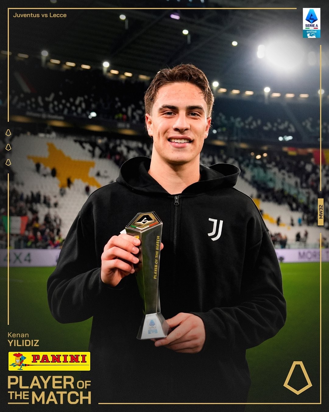 官方消息,凯南-伊尔迪兹当选尤文图斯对阵莱切一役全场最佳。