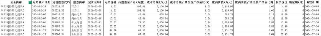 截至解禁日收盘,西部利得量化成长参与4家上市公司定增期间,仅弘元绿能实现浮盈,其他3家均浮亏,最大浮亏的是金辰股份,跌幅达50.88%,三力士和尚品宅配的股价跌幅分别为18.14%、6.27%。