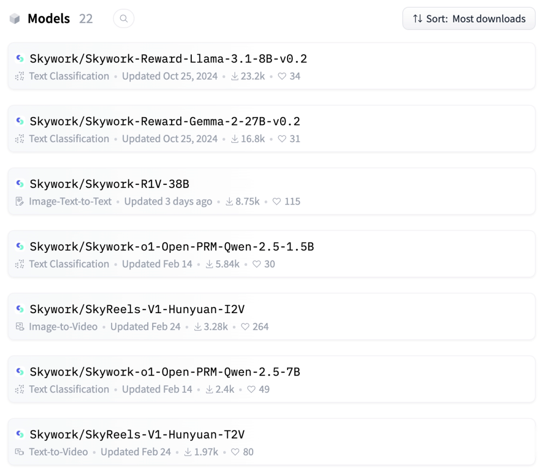 另一方面,这些模型从底层设计上即考虑了实际落地的需求。提供更高性价比、更节省算力,如SkyReels-V1则是看到了垂直领域的落地前景,模型下载量迅速增长也验证了这一市场需求。