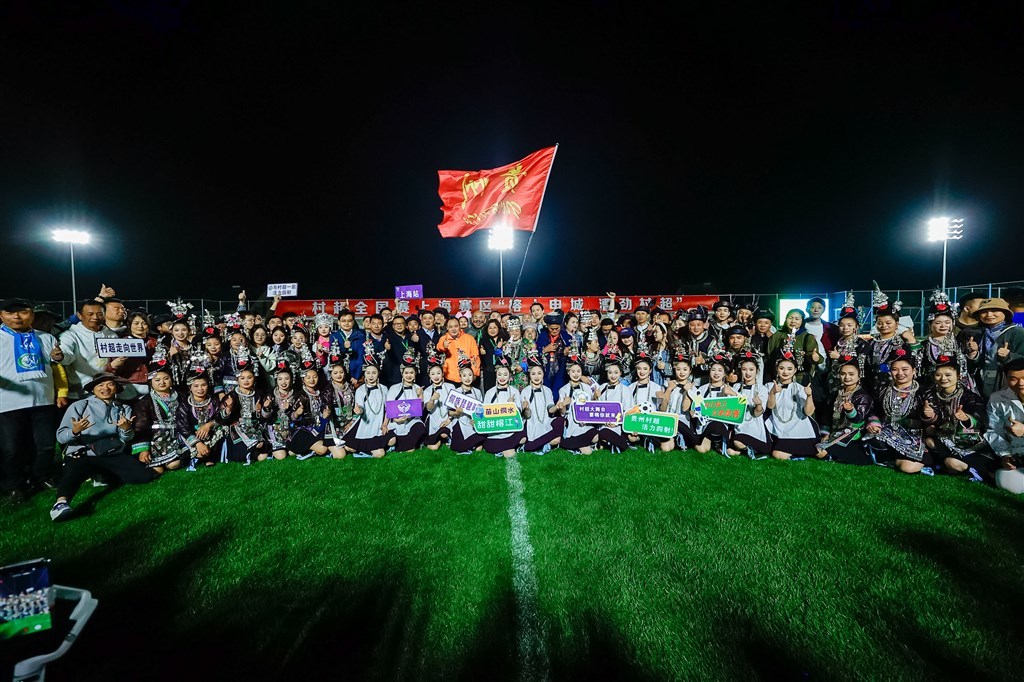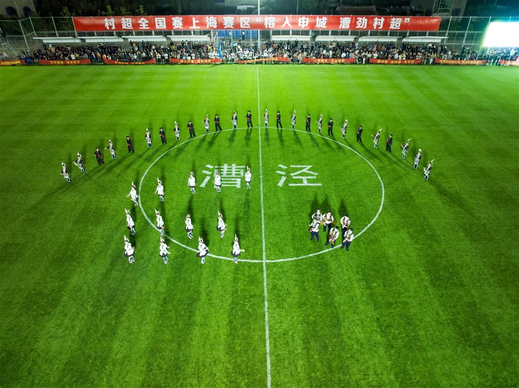 一架无人机携带着友谊赛用球掠过夜空悬停于中圈发球点缓缓降落,裁判的一声哨响让来自贵州榕江大力侗寨足球队和上海漕泾足球队正式踢响了村超全国赛上海赛区首场友谊赛……4月13日,村超全国赛上海赛区“榕入申城 漕劲村超”足球赛在金山区漕泾镇悦野足球乐园启幕。贵州榕江和金山本地球迷观众齐聚一堂,以足球为媒,在非遗歌舞与科技光影的交织中,开启了一场跨越山海的“村味”盛宴。
