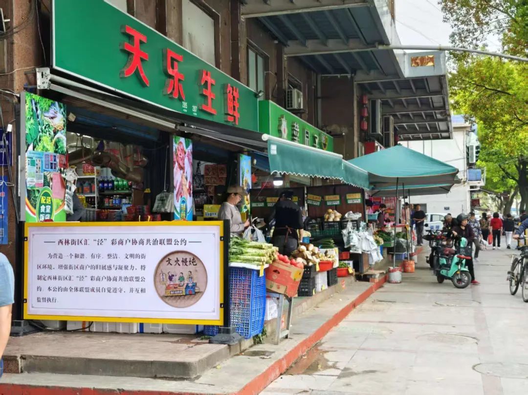 “商户们开始相信,政府是愿意听他们说话的。”镇党委书记夏红梅说。商户们自发成立“汇泾彩商户协商共治联盟”,签订了《自律公约》,还孵化出“巷管家”志愿队,商户之间互帮互助。
