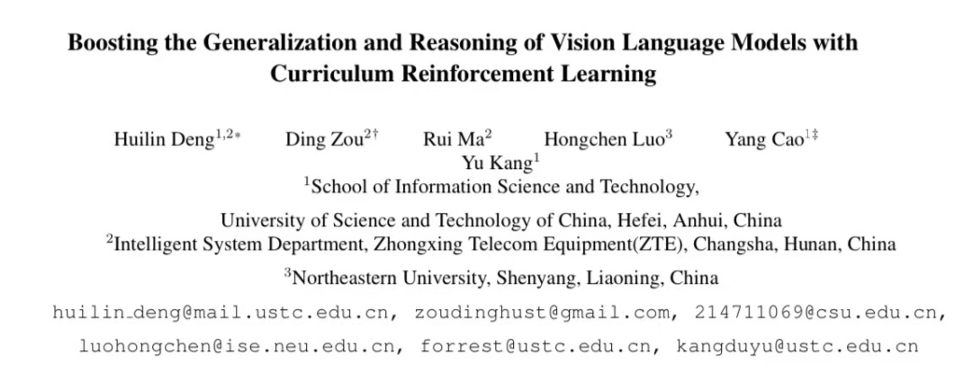 论文标题: Boosting the Generalization and Reasoning of Vision Language Models with Curriculum Reinforcement Learning