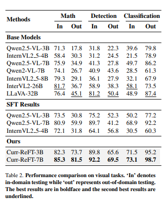 Curr-ReFT:我们提出了一种新型后训练范式,结合课程强化学习和自我改进策略。在 Qwen2.5-VL-3B 和 Qwen2.5-VL-7B 模型中验证了其有效性。