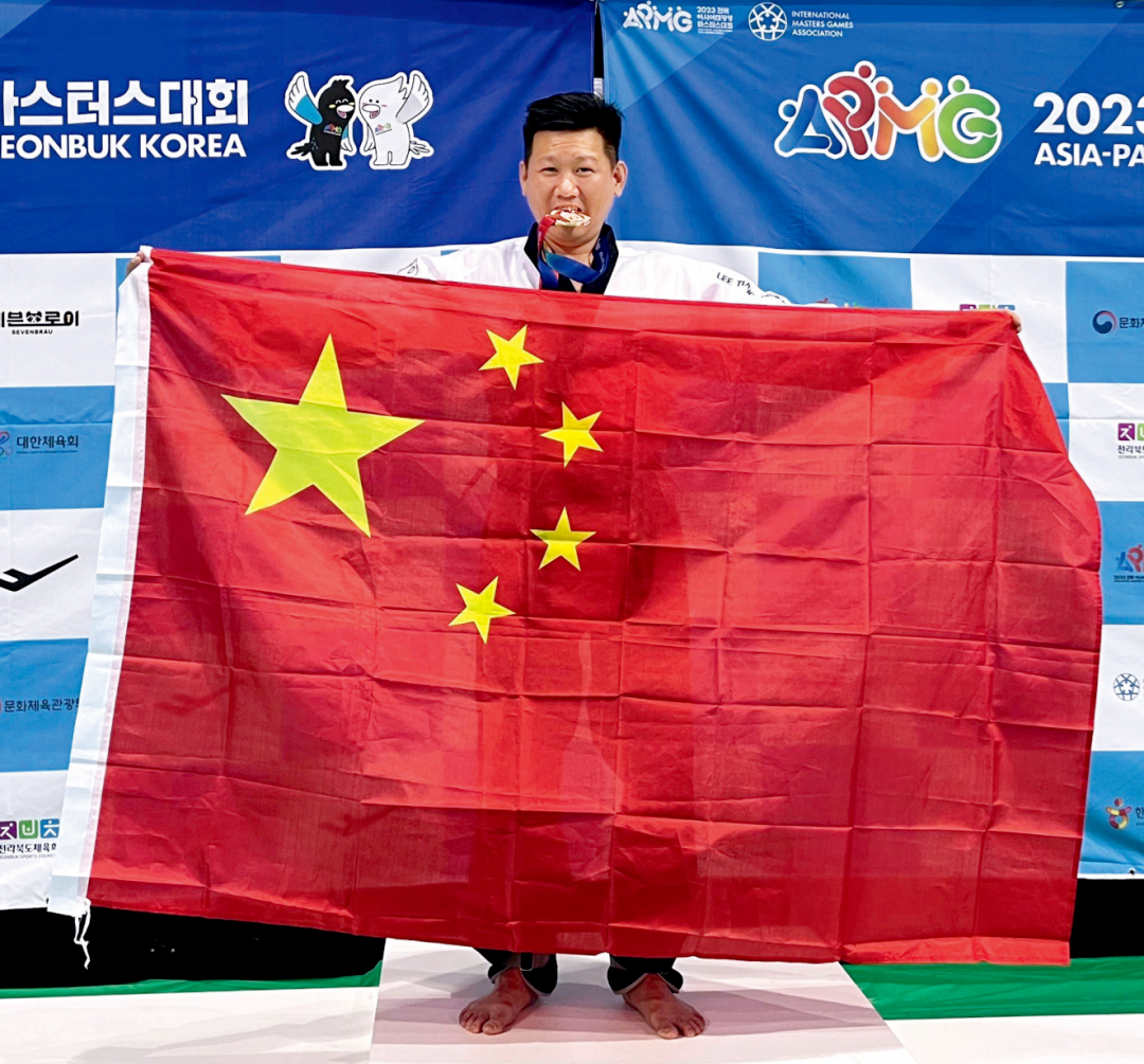 “李东宪!”听到主持人喊我的名字,我站上领奖台,很自然地展开了五星红旗。