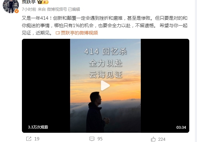 身在美国的贾跃亭并没有闲着,4月14日贾跃亭在个人社媒发布视频,回忆乐视414电商节创业辉煌,并反思曾经的战略失误。