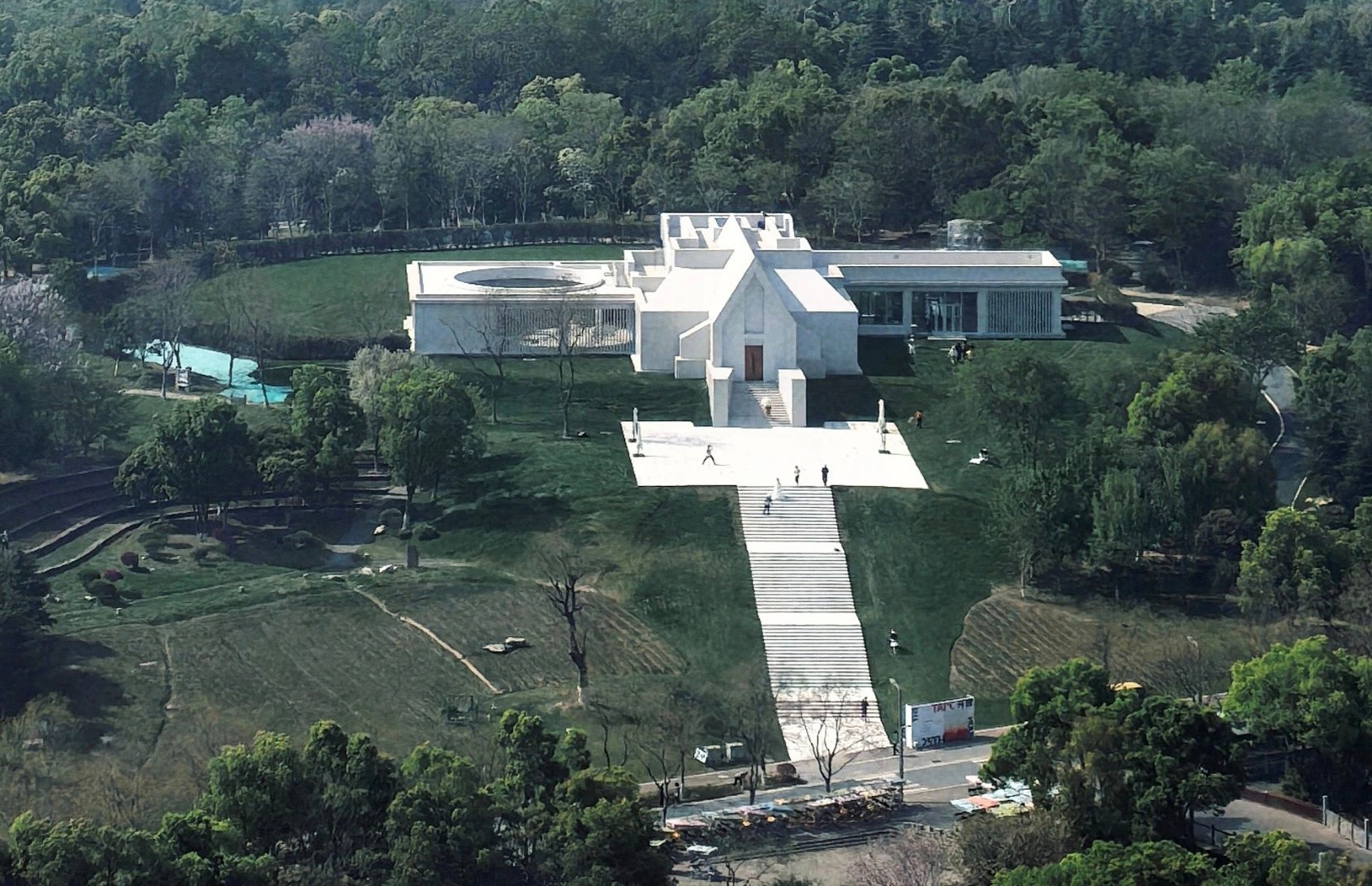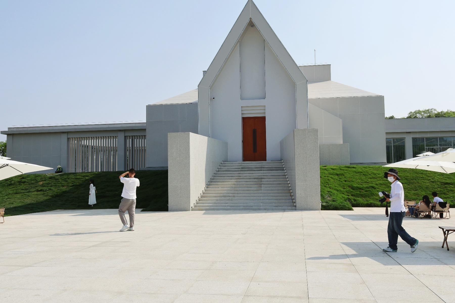 近期,武汉园博园景区北门建筑体的围挡被拆除,绿意盎然的草坪上“长”出一座通体雪白的建筑,被网友称为武汉“小阿那亚”。