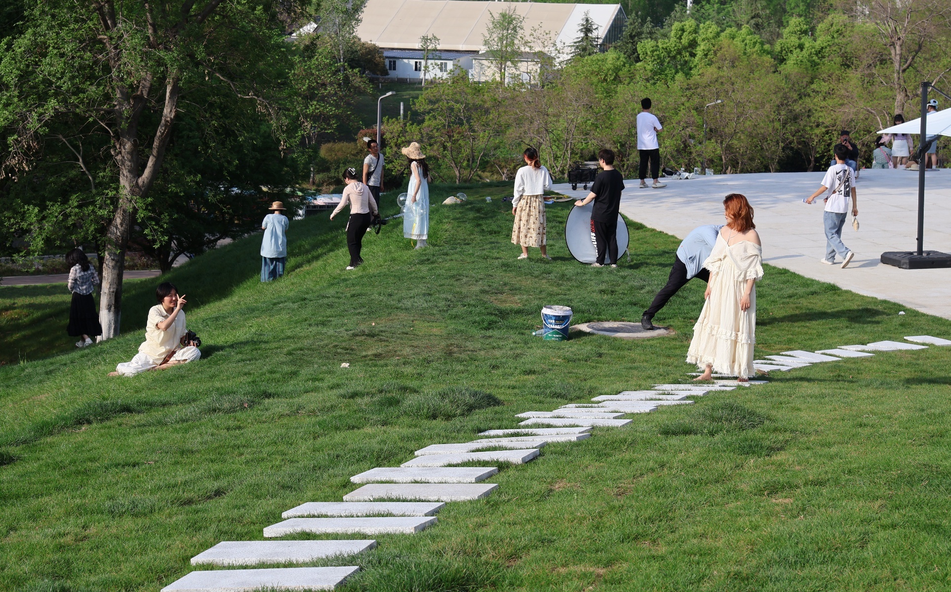 游客在草坪上打卡拍照。图/九派新闻 曾怡婷
