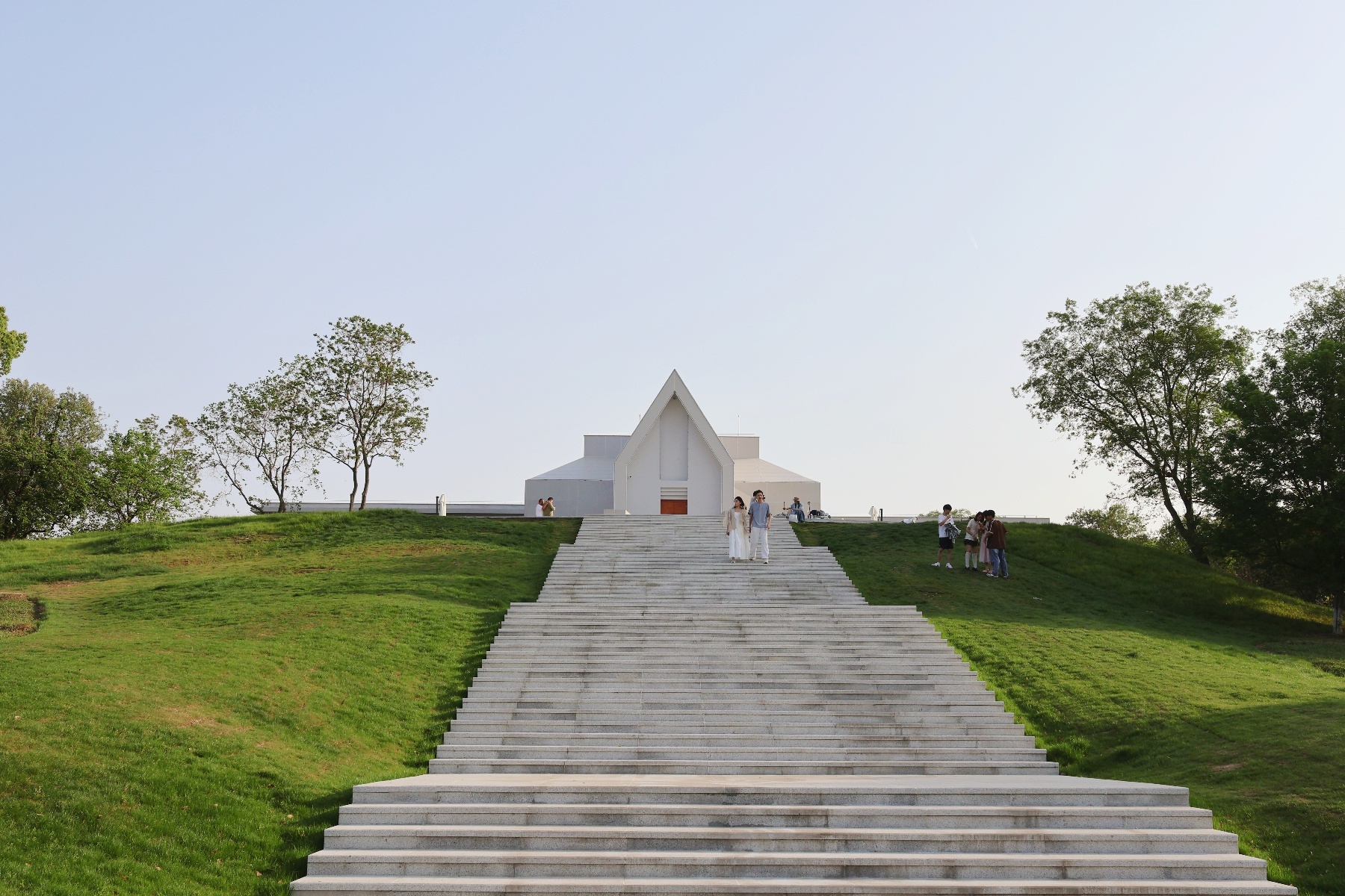 这座雪白的建筑体名为TAI℃,集艺术与商业功能于一体,是武汉园博婚礼中心的人生仪式堂。杨璇表示,景区希望通过打造这样一个园林中的艺术交流与展示空间,为游客带来更多可能性,并进一步提升武汉园博园整体业态格局,打造青年群体精神新高地。