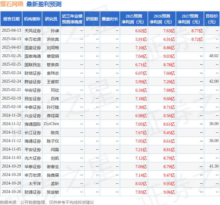 以下是详细的盈利预测信息: