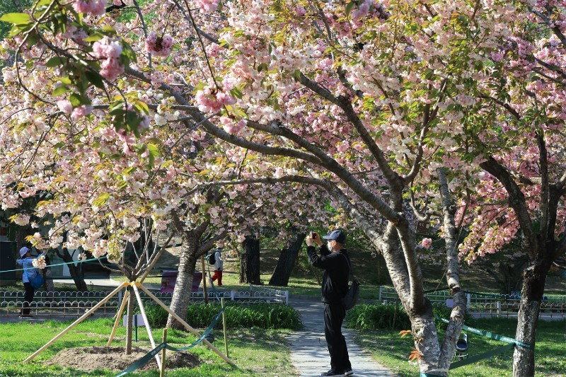 北京青年报记者4月14日从玉渊潭公园管理处获悉,经过两天的强风考验,公园内众多品种的晚樱依然保持着最佳景观。当前,玉渊潭公园千余株晚樱正在盛放。