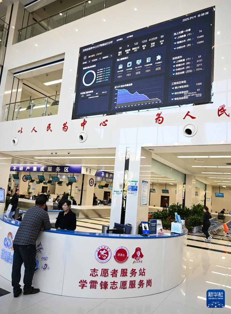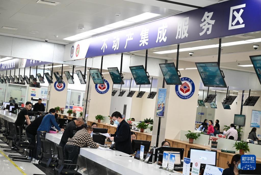 4月14日,市民在淮安市洪泽区政务服务中心不动产集成服务区办理业务。