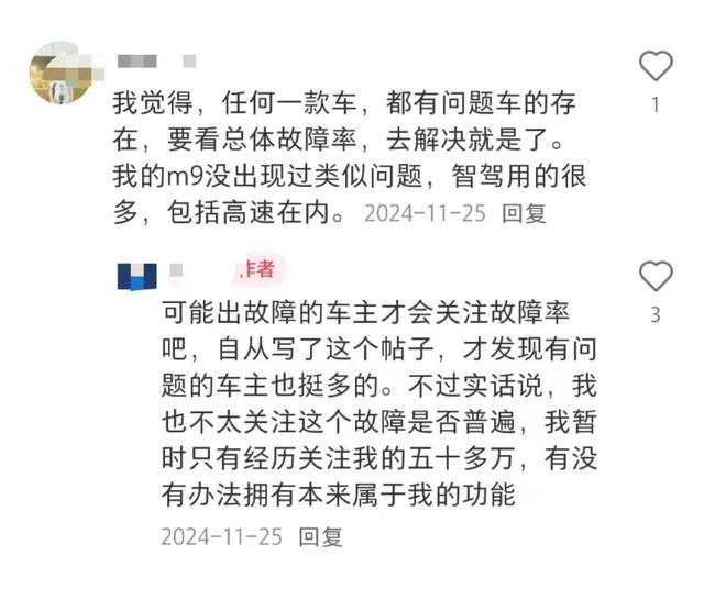 小红书上也有不少追随者。有网友称自己的M9并未出现上述智驾的类似问题,日常使用中频繁启用智驾功能,一切都很正常。
