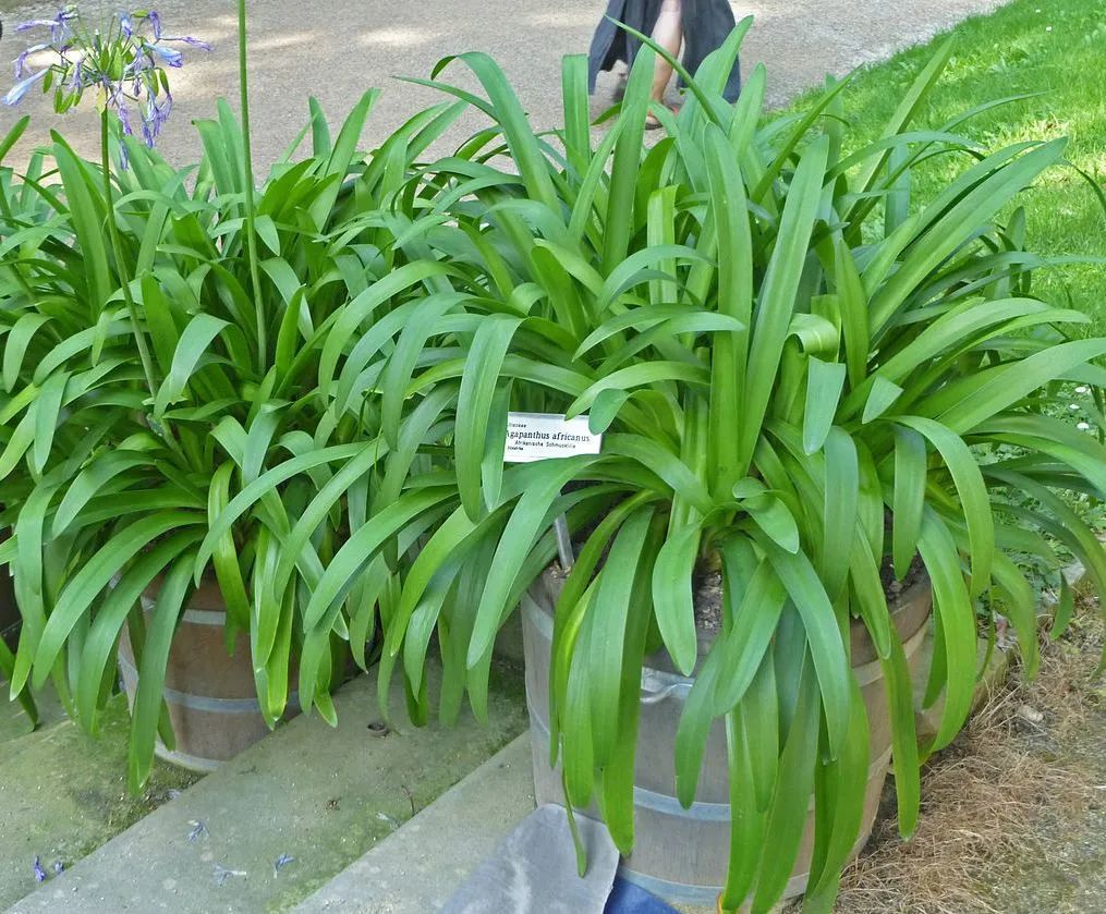 百子莲也是有非常多的品种的,平常我们去购买的时候,可以根据它们叶片的大小进行选购,就是叶片比较细小的植株,植株比较低矮,适合盆栽养护;而叶片特别宽的百子莲品种,那植株会特别高大,比较适合地栽养护。