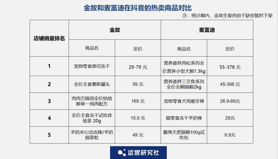 作为对比,常年位列抖音宠物视频榜 Top 1 的麦富迪,销量最高的猫粮“营养森林三文鱼冻干全价全期猫粮”,2kg 卖 45 元。类似产品,金故的定价是麦富迪的三四倍。