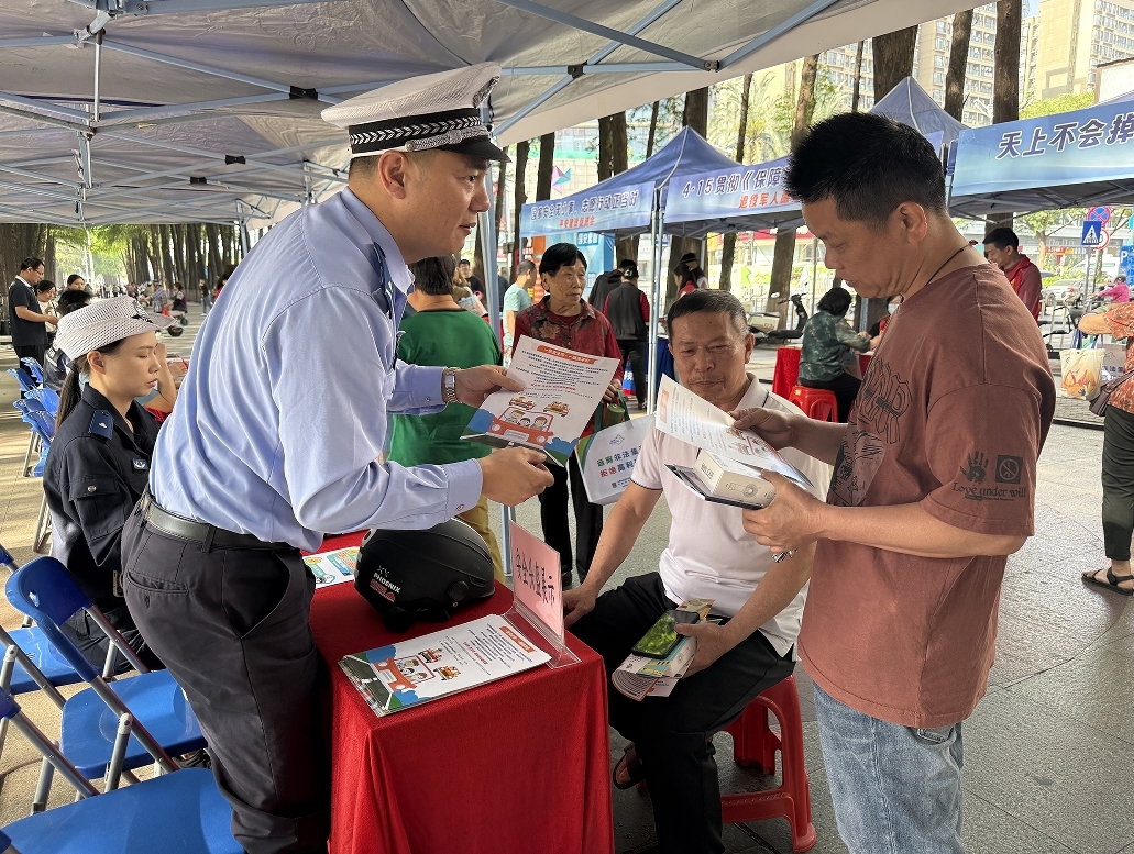 为切实提高辖区群众的交通安全意识,有效预防和减少道路交通事故的发生,4月15日,东莞交警长安大队以“4.15”全民国家安全教育日为契机,走进辖区长青街积极开展交通安全普法宣教活动。