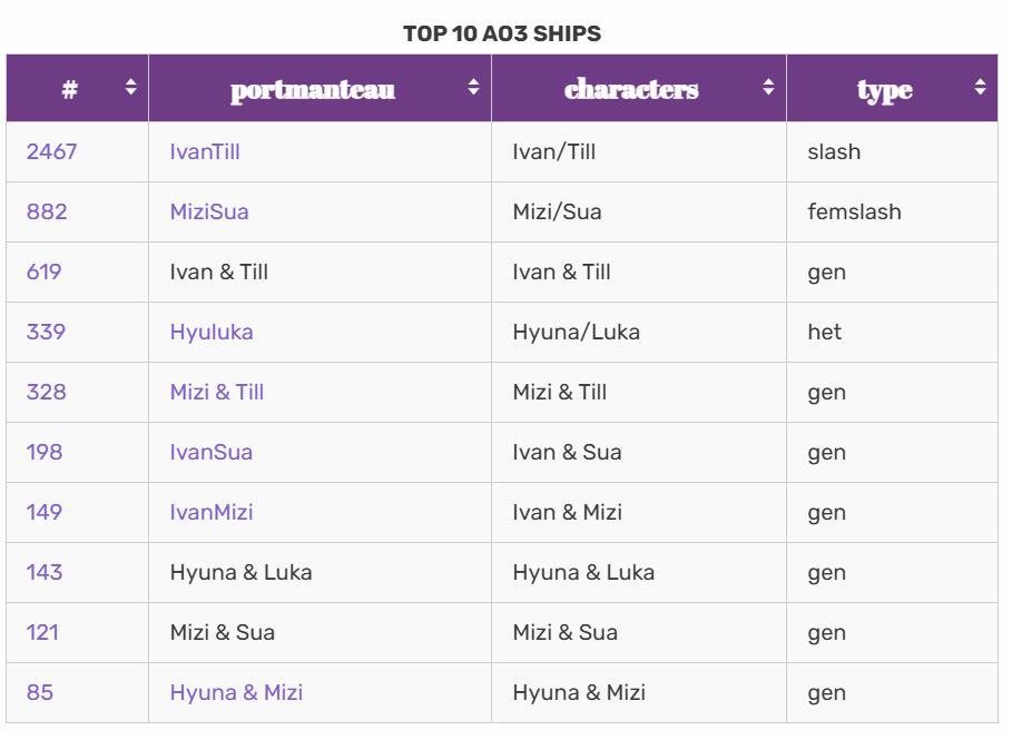若前往同人爱好者聚集的网站AO3搜索作品关系配对,很难相信主要角色只有6人。由于每个角色个性设定鲜明,社交媒体众多关于情感、CP的讨论里,还夹杂着许多“单推人”对某位角色的怜爱之情。显然在“卖角色”这块,《异形舞台》很是擅长。