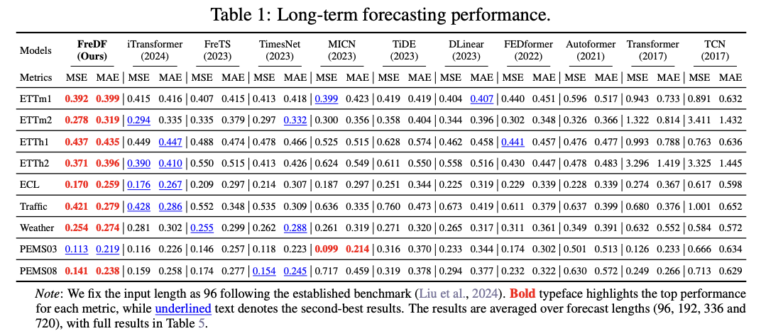 FreDF 提出了一种基于频域标签的训练方法,既保留了多任务预测的特性,又有效避免了标签自相关性带来的偏差。作为一种模型无关的损失函数,实验结果表明,其在多个预测模型上均表现出一致的性能提升。