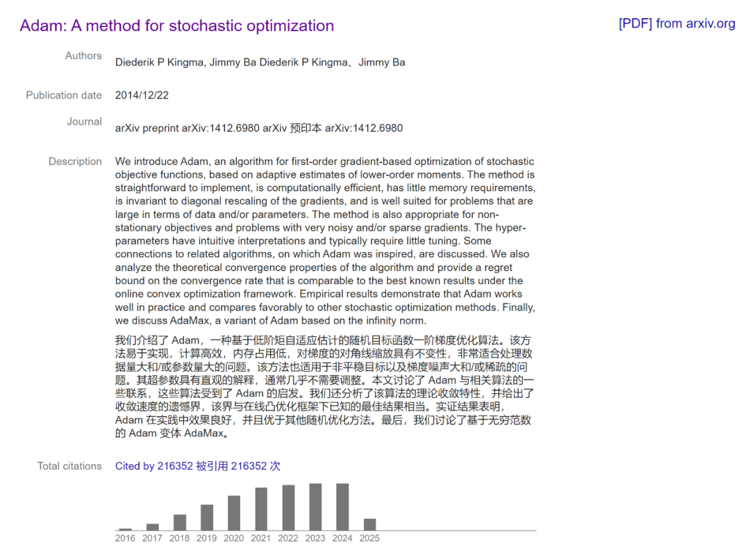 根据 Google Scholar 的数据,Adam 论文的被引量已经超过 21 万。