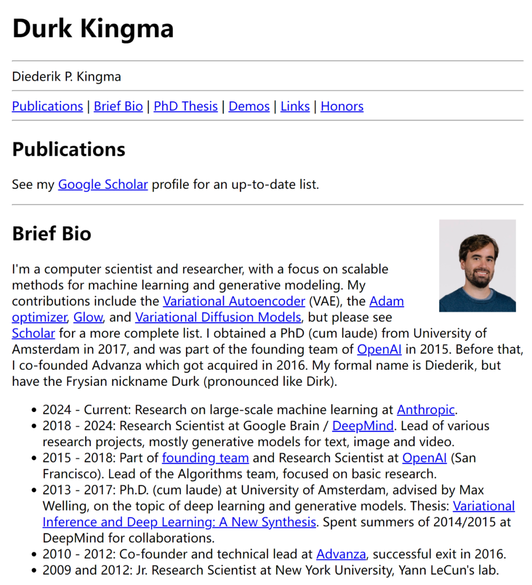 2013-2017 年:在阿姆斯特丹大学攻读博士学位,导师为 Max Welling,研究领域为深度学习和生成模型;