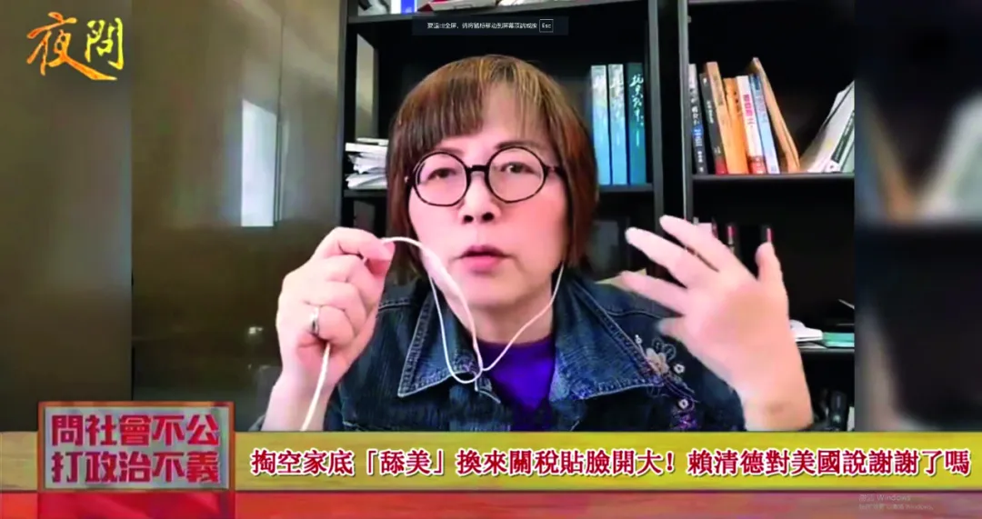 接受采访时,台湾知名媒体人黄智贤刚刚结束网络政论节目《夜问》 的直播,标题栏上的文字犀利得一如既往:“掏空家底‘舔美’换来关税贴脸开大!”