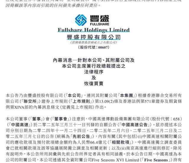 而针对是否有和解的可能?中国高速传动方面表示,对于任何可能损害公司治理结构和股东权益的行为,无论涉及何方,均将坚决采取必要的法律行动。丰盛控股则表示,对法律程序充满信心。