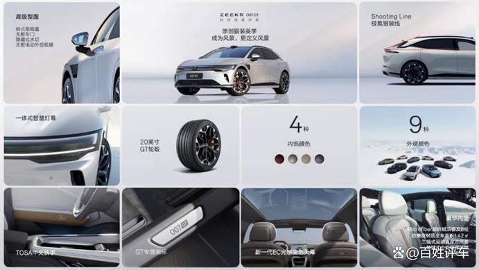 极氪007GT,魅力在色彩。提供9款外观颜色,包括001FR同款冰川银,全新开发的旷境绿,以及千里挑一的星际紫和暗夜紫。紫色外观也将在极氪全系车型上进行应用。极氪007GT还带来黑灰、黑白棕、紫白以及红黑4款内饰颜色,其中红黑内饰高级感更胜百万级豪华车。