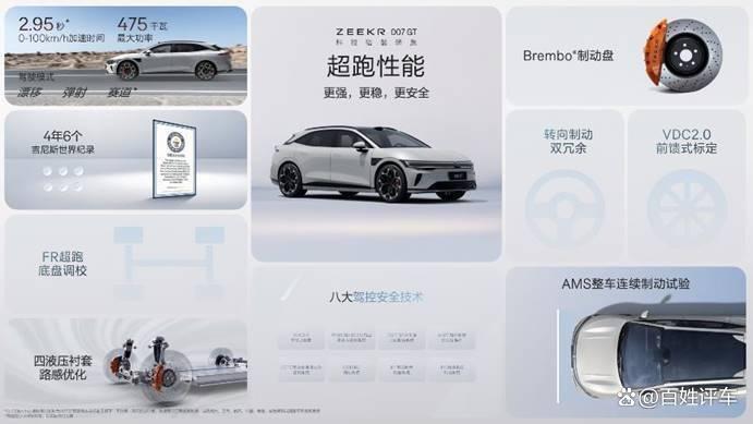 全系标配Brembo大尺寸制动盘,全系标配八大驾驶控制安全技术、双冗余转向制动安全系统,其中,VDC2.0前馈式标定用时18个月,测试里程超500万公里,超200项精细化调校,能利用传感器提前预判车辆失控风险,将干预动作提前到车辆失控之前,保障安全同时不影响驾驶乐趣,让每个驾驶者都拥有一个隐形的驾驶教练。极氪007GT还通过了行业最严苛的AMS整车连续制动试验,连续10次刹停性能无衰减,耐久性和可靠性经受住了极端环境和复杂路况的考验。