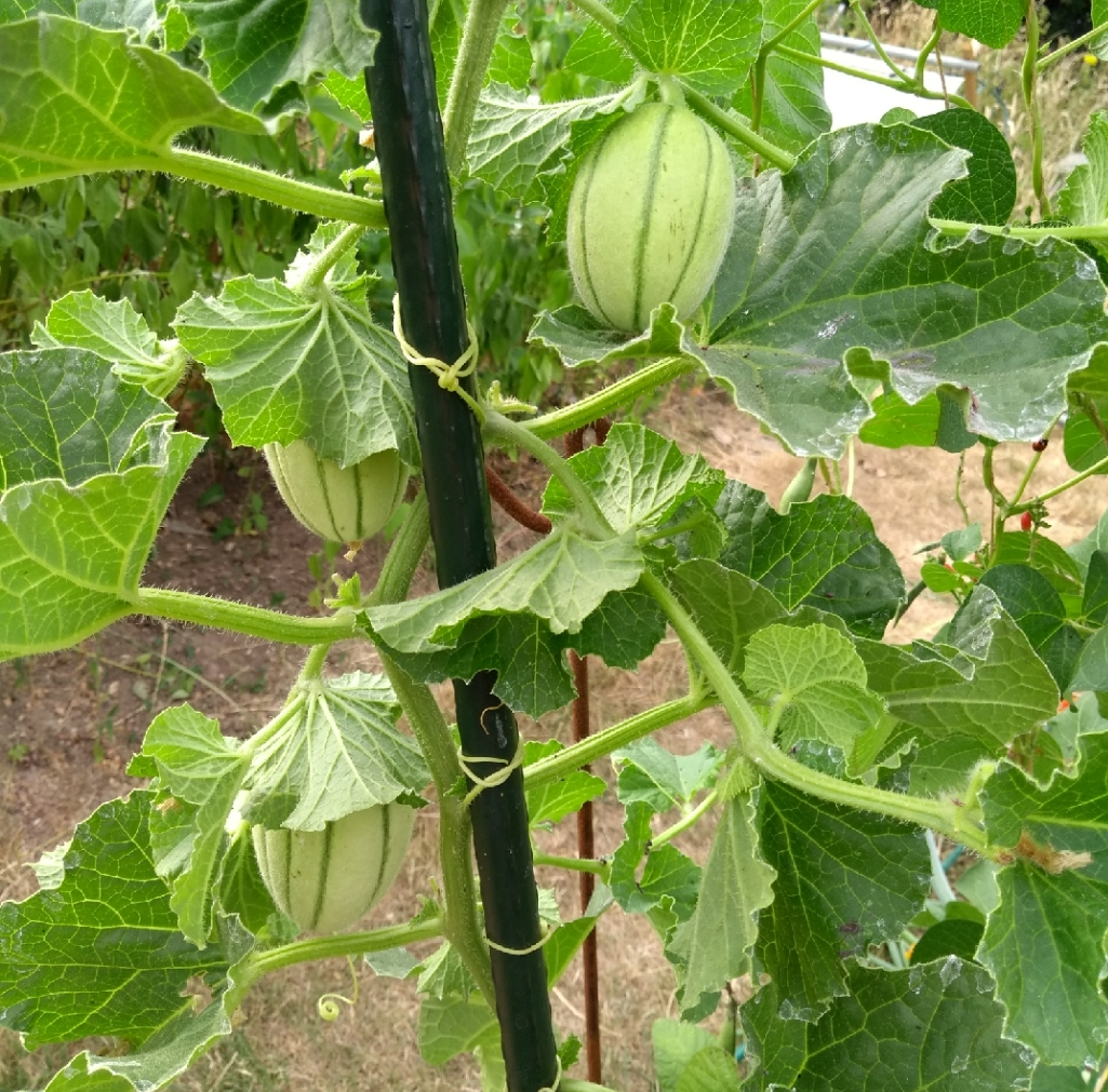 小贴士:甜瓜挂果后,在果实膨大期间,对水分需求量大,注意增加补水,但果实发育饱满后,在成熟前10天要控水增甜。
