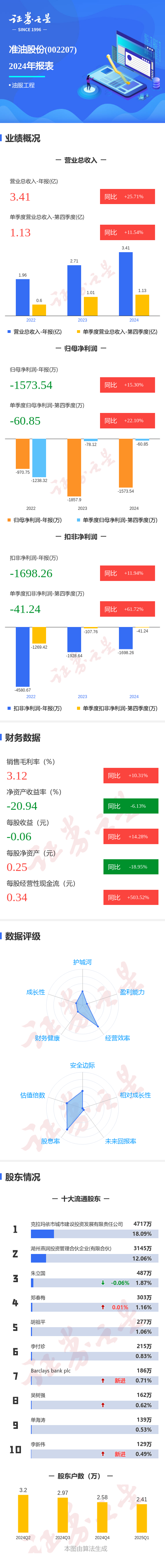 证券之星消息,准油股份2024年年报显示,公司主营收入3.42亿元,同比上升25.71%;归母净利润-1573.54万元,同比上升15.31%;扣非净利润-1698.26万元,同比上升11.95%;其中2024年第四季度,公司单季度主营收入1.13亿元,同比上升11.55%;单季度归母净利润-60.85万元,同比上升22.11%;单季度扣非净利润-41.25万元,同比上升61.72%;负债率83.21%,财务费用651.67万元,毛利率3.12%。