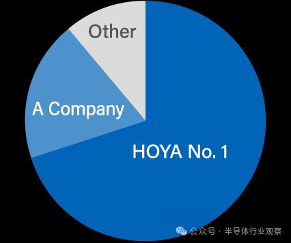 目前,全球市场上大规模使用的光罩主要来自于日本的豪雅(Hoya)和信越(Shinetsu),AGC。而豪雅更是其中的佼佼者,在IC半导体用的光罩基板市场占据了绝对多数的市场份额,在豪雅官网的报告材料中亦有体现。
