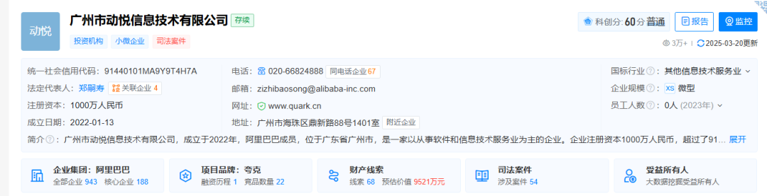 鲜为人知的是,夸克的主体公司和研发团队就在广州琶洲,即广州动悦信息技术有限公司。