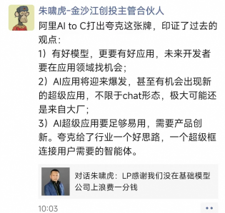此前公开表态不看好AI大模型投资的朱啸虎,也公开表示夸克“给了行业一个好思路,一个超级框连接用户需要的智能体”。
