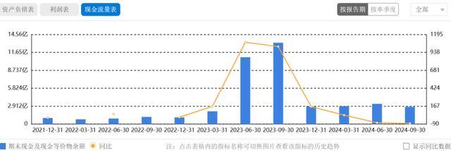 另据东方财富网数据,新莱福2024年以来,筹资活动现金流入数据并没有增加。截至2024年第三季度末,新莱福期末现金及现金等价物余额已从2023年的13.24亿元,下降至2.83亿元,降幅高达78.63%。