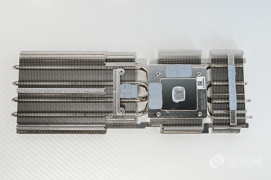 拆开显卡后,可以看到内部采用了更大面积的散热鳍片,以及4根6mm散热管,这样的散热配置堪称豪华,并且散热管与鳍片之间还采用了回流焊工艺,进一步提升了散热效能。