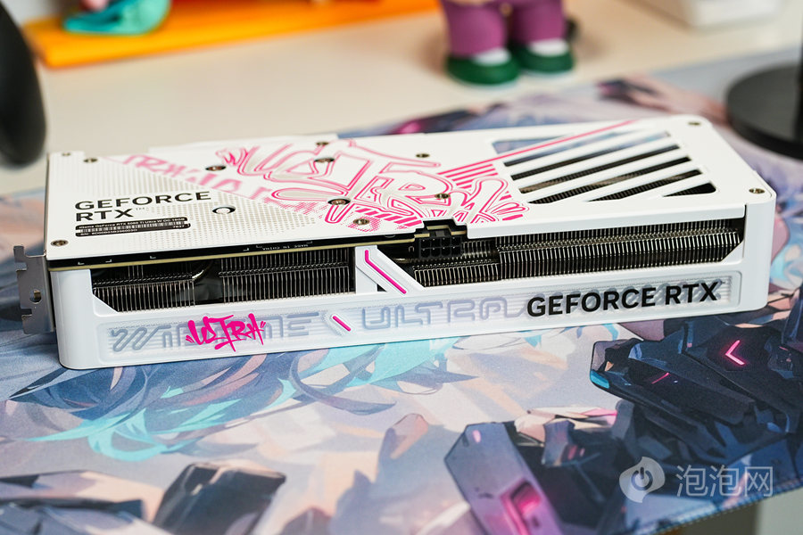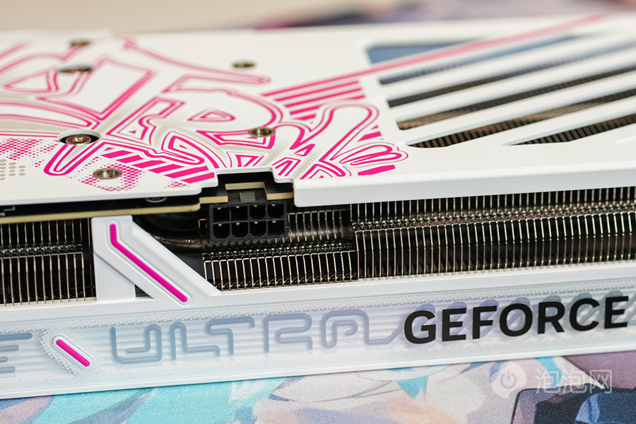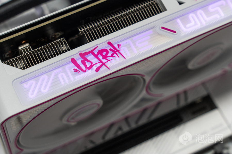 显卡正面、背甲、尾部等处都加入了涂鸦风格的“Ultra”字符,既有着鲜明的品牌形象,又提升了显卡潮流感,充满了活力。