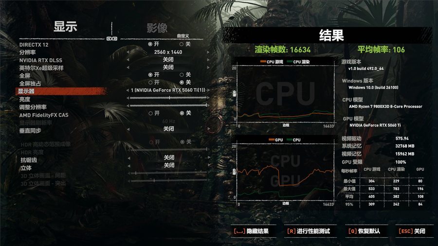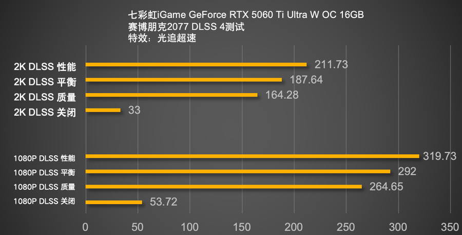 从测试结果来看,iGame RTX 5060 Ti Ultra三风扇显卡在2K分辨率下运行传统光栅游戏时同样有着较高的帧数,游戏体验丝滑流畅。